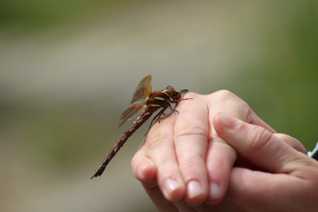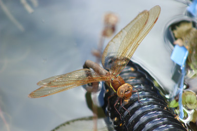 There are also so many dragonflies, we were finding the shells of the nymphs as well as exoskeletons on the filtration system beds of the bio pool - one even landed on Freya's hand while munching on a ladybug! It's easy to feel the living spirit of nature through these beautiful creatures and the fact there are so many here must mean they love the habitat that Piers is creating - so much so in fact, that this dragonfly was laying eggs all over the pool...